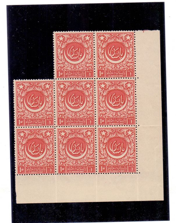 Category Pakistan Lot number 117 Lot Pictures Pakistan 1948 1st Independence set MNH block of 8 White gum Superb condition.