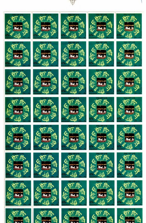 Category Pakistan Lot number 126 Starting Bid 700 Lot Pictures Pakistan 1977 Complete Sheet 50 Mint stamps of HAJJ 1977 65p