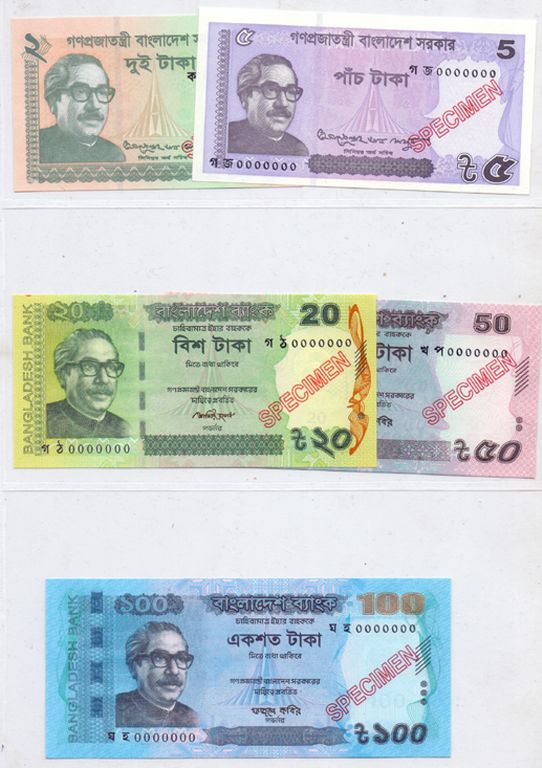 Category Rest of World Banknote Lot number 807 Starting Bid 3000 Lot Pictures Bangladesh 2012-2018 Specimen set of 5 values UNC.