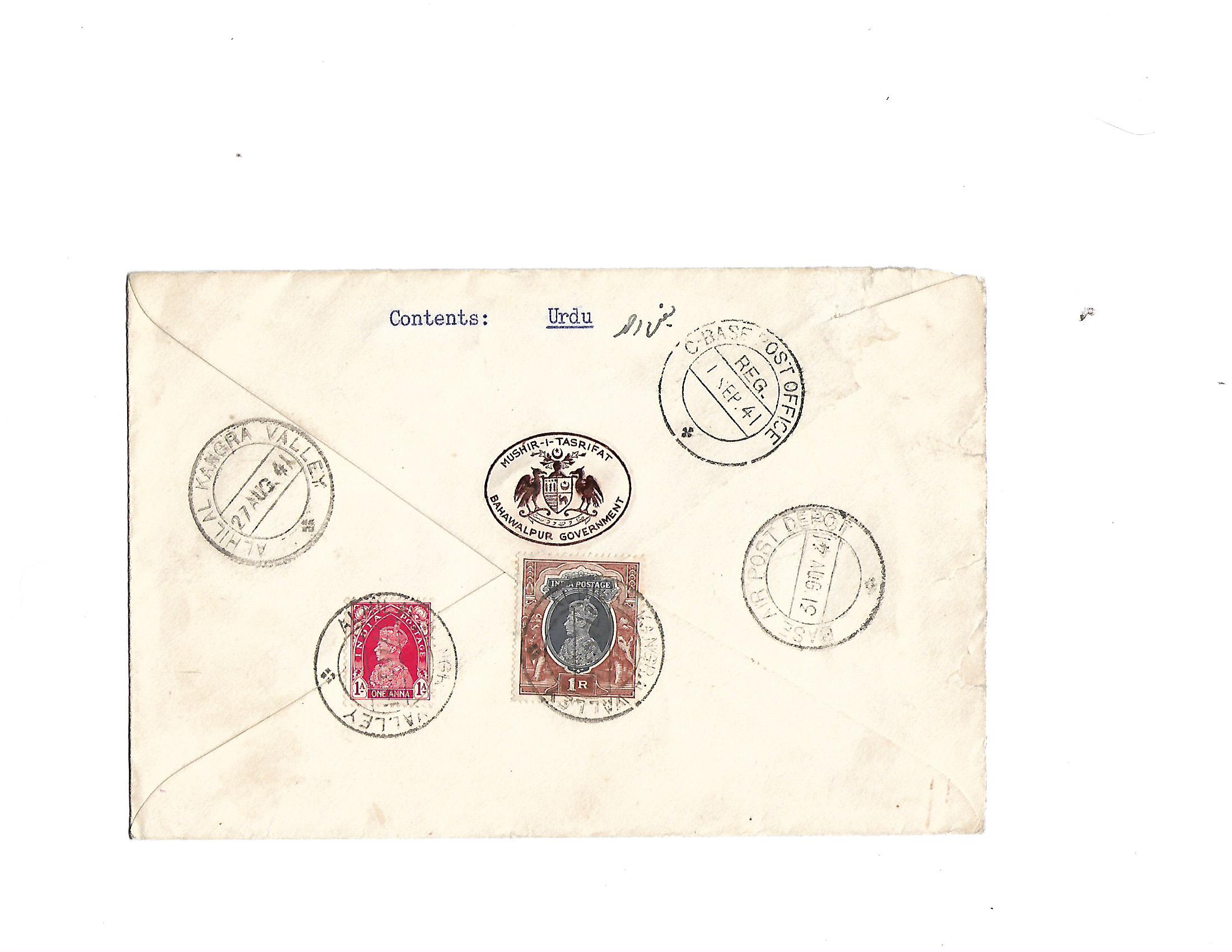 Bahawalpur - 1941 Registered and censored cover addressed to the Nawab of Bahawalpur during World War II on official embossed stationery Bahawalpur Government.