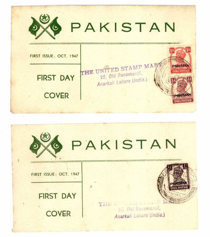 Category Pakistan Overprint Lot number 205 Starting Bid 3000 Lot Pictures Oct 1947 2 x FDC (with Overprint Stamps