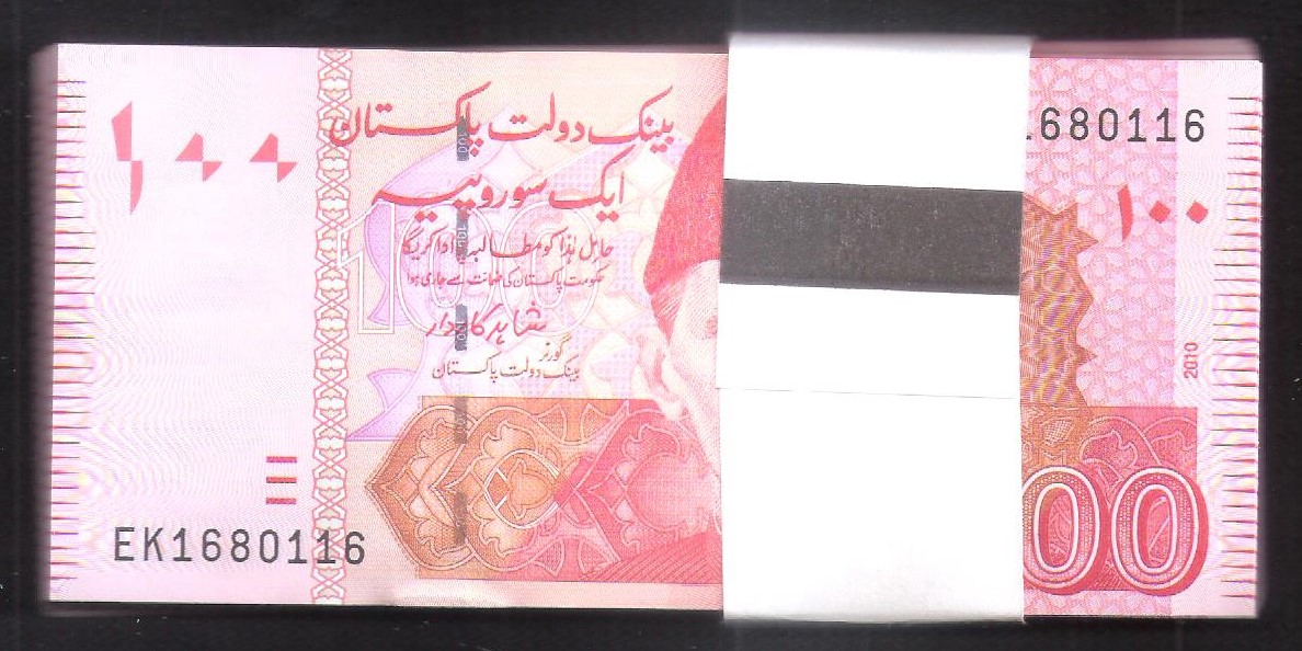 Pakistan Rs 100 (85 Notes) Signature by Shahid Kardar 2010 Issue EK prefix missing UNC