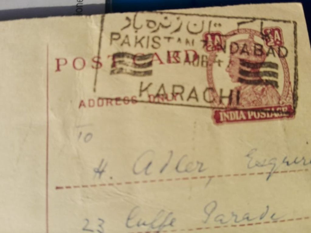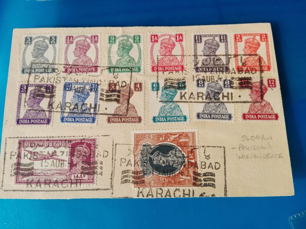 Pakistan post card used with Pakistan ZINDABAD cancellation of 15 Aug.1947.on both sides. rare.