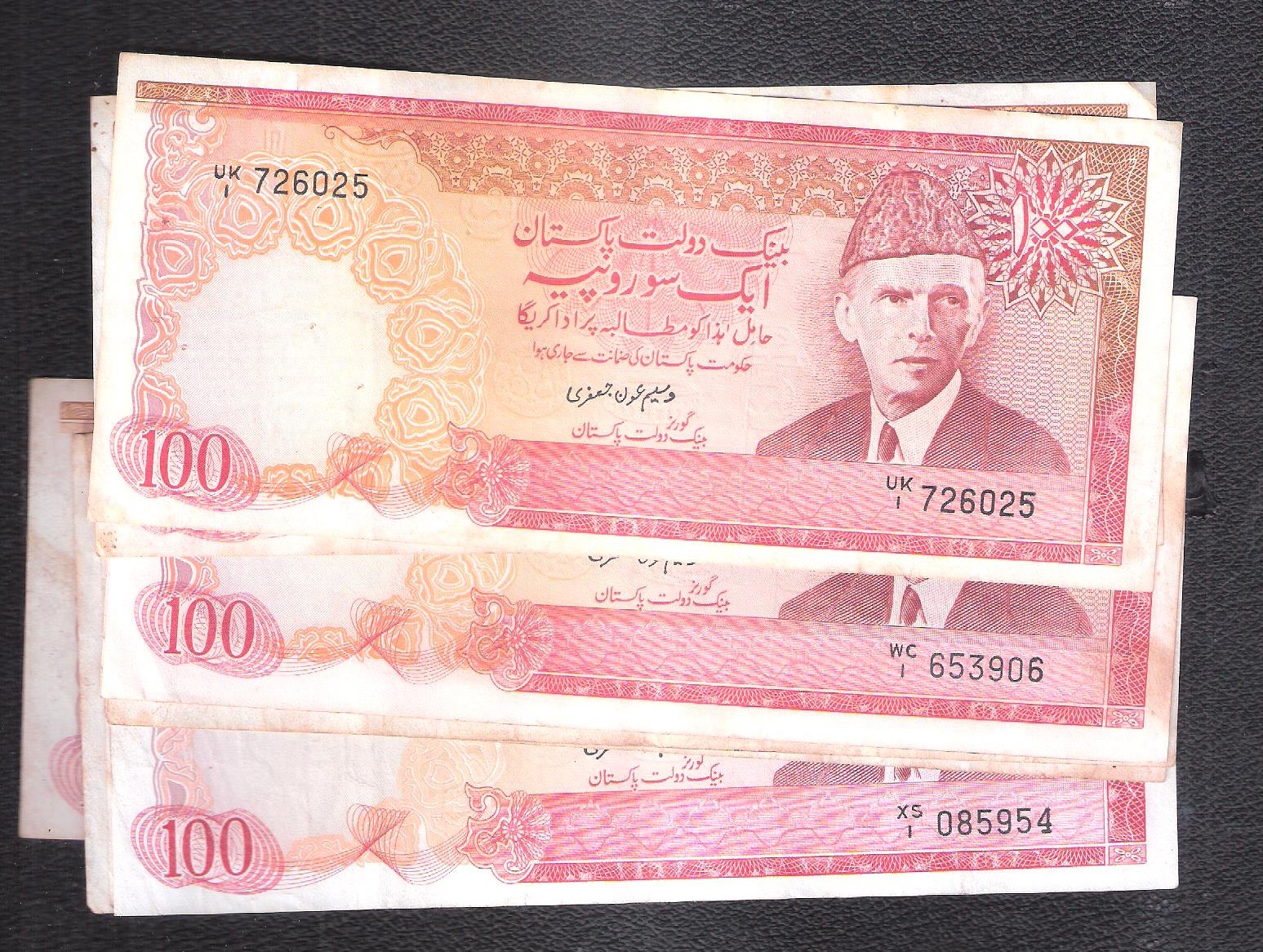 Category Banknotes Lot number 668 Starting Bid 2000 Lot Pictures Pakistan Rs. !00 (10 notes) Signature by Wasim Oun Jaffery condition XF-F Add to Slideshow Off