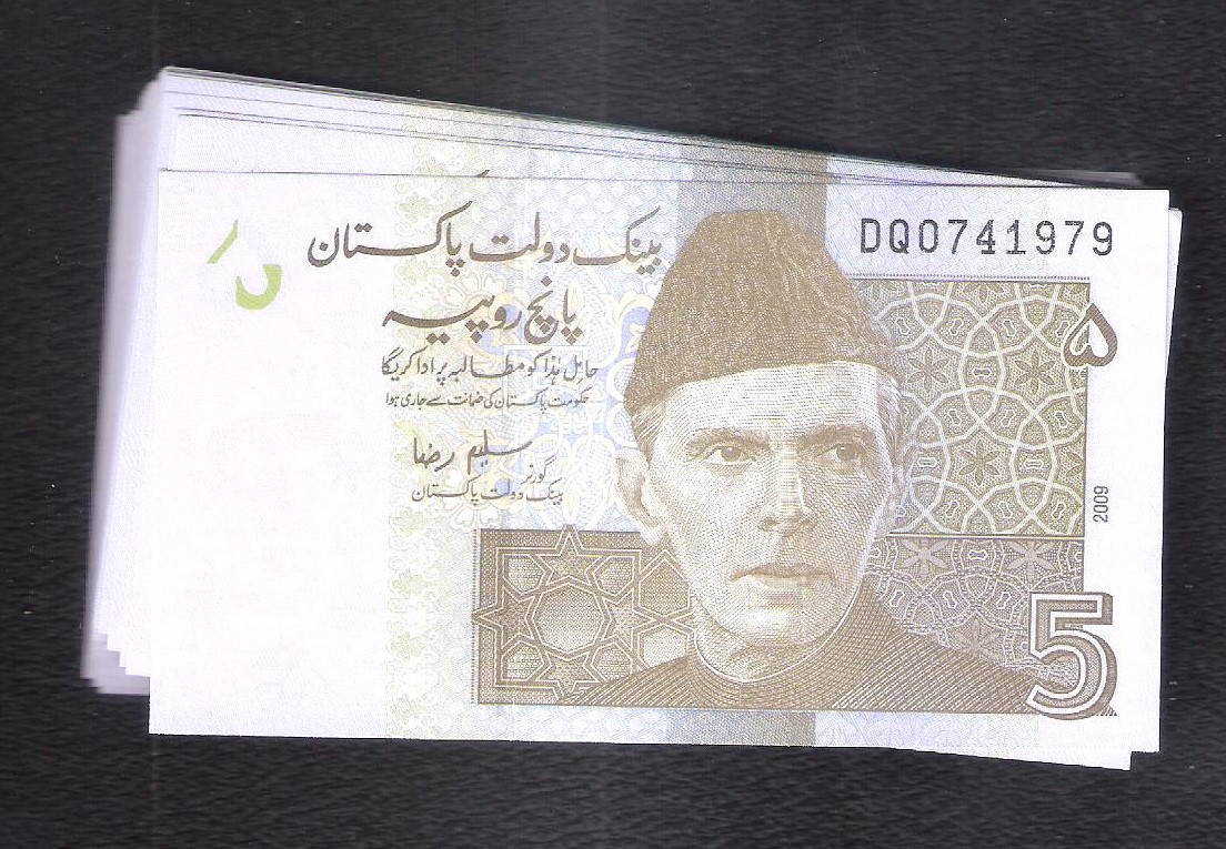 Category Banknotes Lot number 681 Starting Bid 500 Lot Pictures Pakistan Rs 5 (35 notes ) Signature by Saleem Raza 2009 Issue DQ prefix UNCĀ Add to Slideshow Off