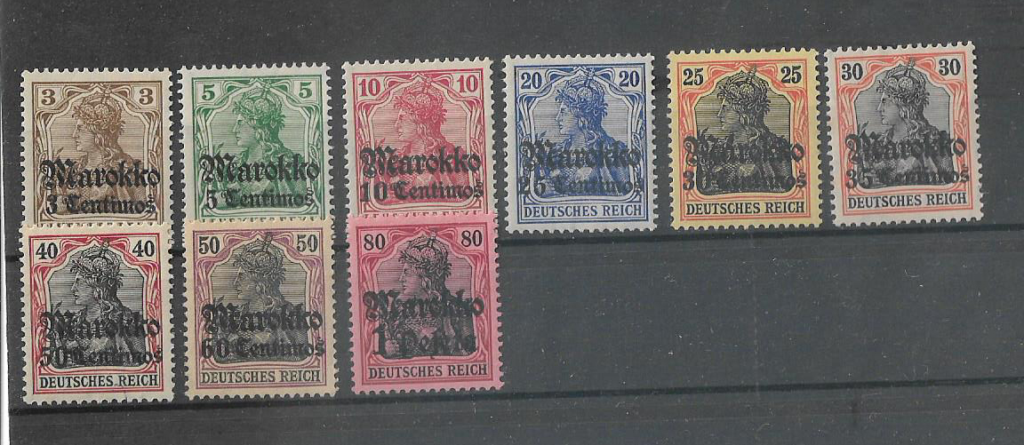 Category Rest of World Lot number 1006 Starting Bid 1000 Lot Pictures German Postoffice in Morocco 1911 Germania stamps overprint short set MNH + Germany Germania 2 booklet strips. Add to Slideshow Off