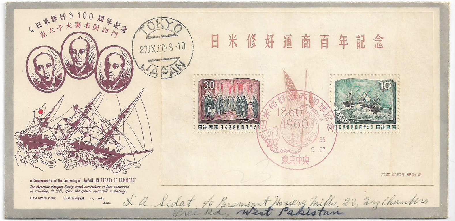 Category Rest of World Lot number 1010 Starting Bid 500 Lot Pictures Japan 1960 FDC with S/s commercial used airmail to Pakistan Add to Slideshow Off