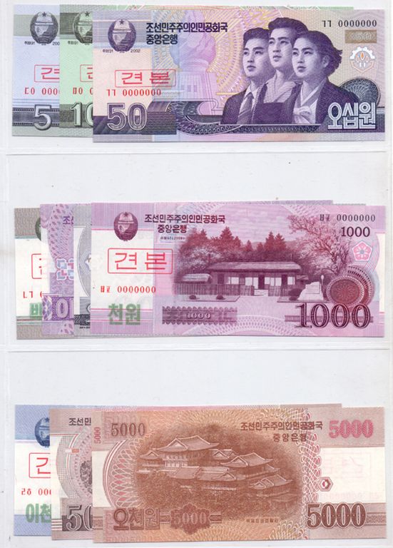 Category Rest of World Banknote Lot number 805 Starting Bid 1800 Lot Pictures North Korea 2012-2016 Specimen set of 9 values UNC.