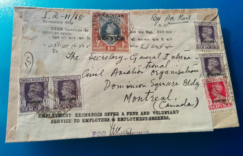 Category Pakistan Overprint Lot number 219 Starting Bid 5000 Lot Pictures Pakistan over print stamps used on official cover to Canada.