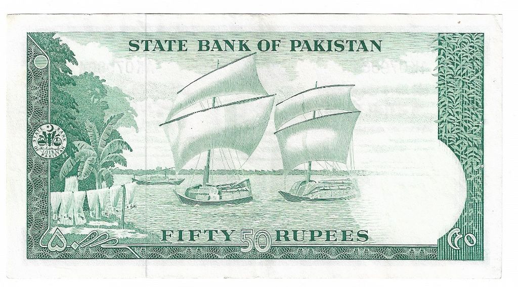 Category Banknotes Lot number 618 Starting Bid 4000 Lot Pictures Pakistan Rs 50 Signature by Shujat Ali Hasni (Green) Condition XF+
