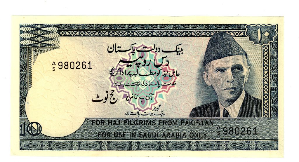Category Banknotes Lot number 623 Starting Bid 1000 Lot Pictures Pakistan Rs 10 Haj Note Signature by Aftab Kazi Condition UNC
