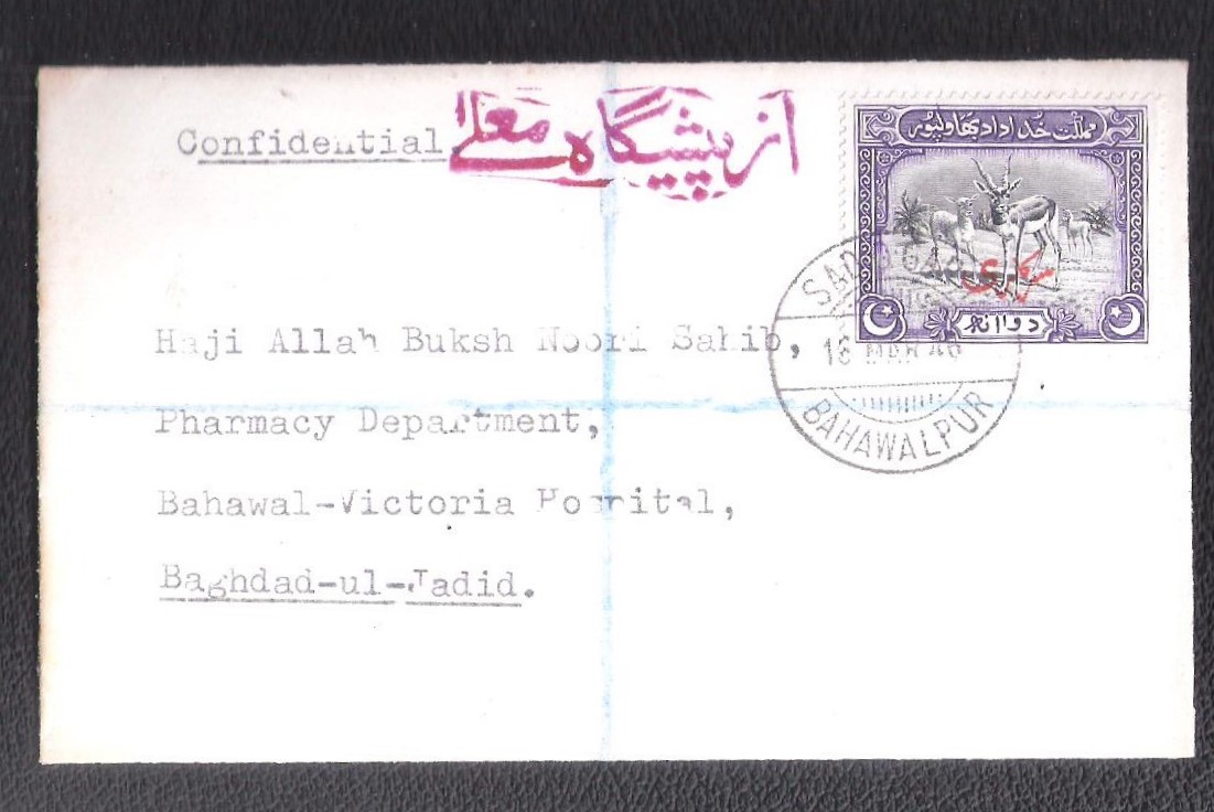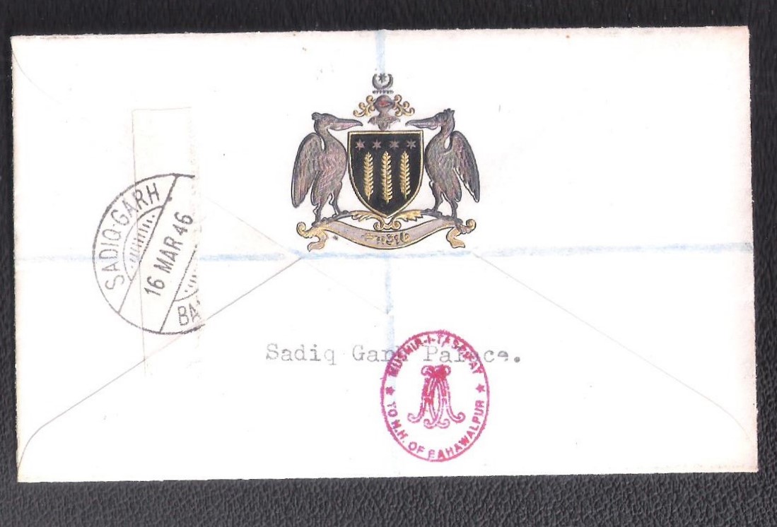 Category Bahawalpur Lot number 512 Starting Bid 18000 Lot Pictures Bahawalpur Cover franked with 2a Overprint SARKARI from SADIQ-GARH dated 18 Mar 1946