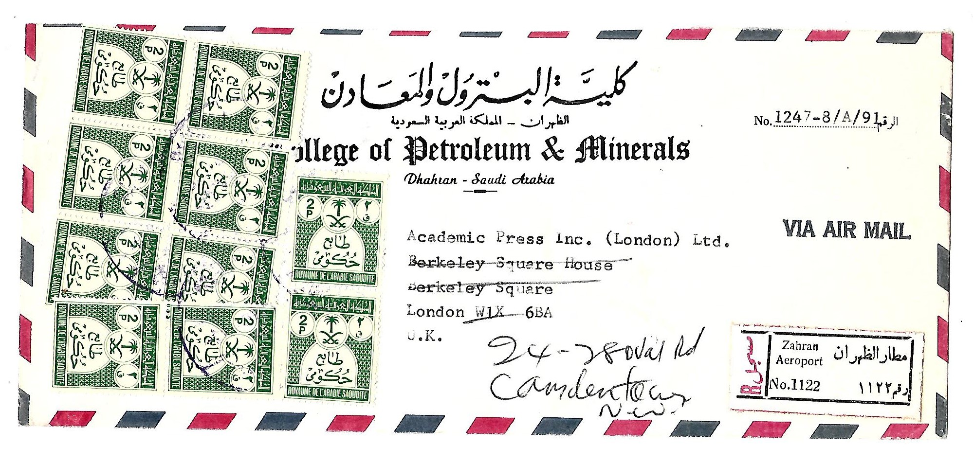 Category Middle East Lot number 913 Starting Bid 6000 Lot Pictures Saudi Arabia:1970 KFUPM cover with multiple official stamps, SG 01041, affixed