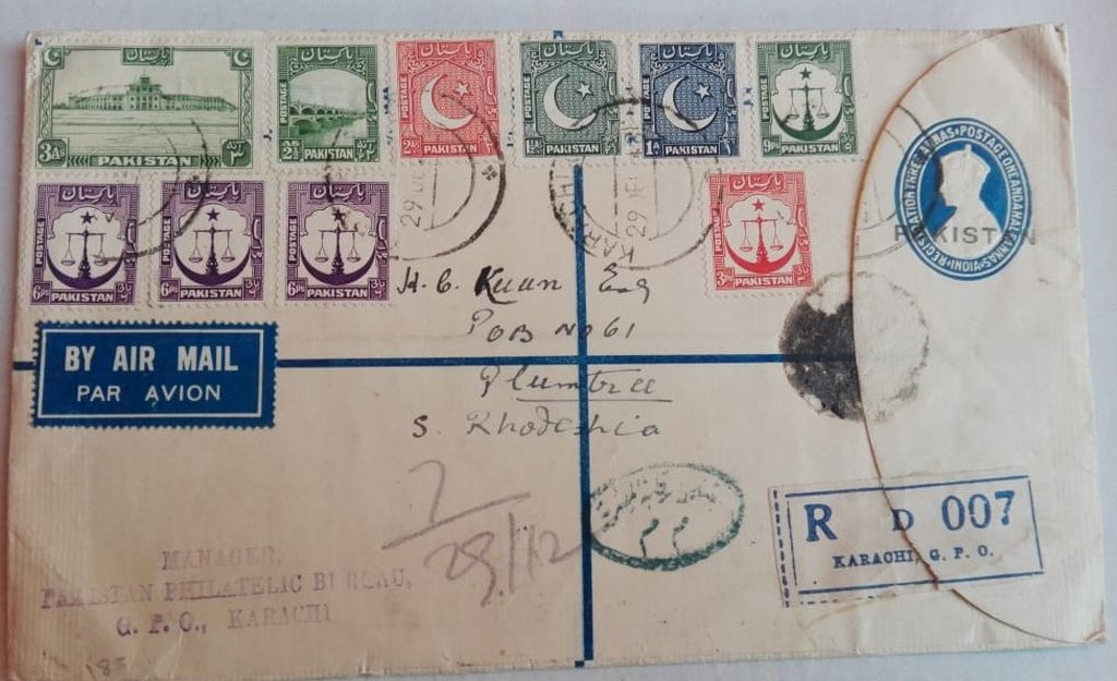 Category Pakistan Overprint Lot number 211 Starting Bid 10000 Lot Pictures Pakistan over print on British India 4 ½ anna registered cover used for foreign mail with extra stamps.