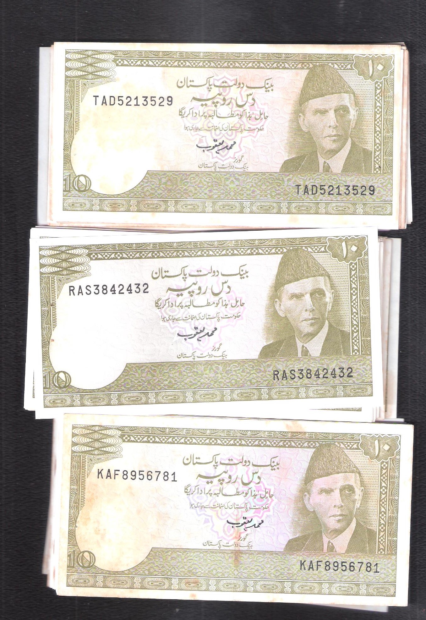 Category Banknotes Lot number 628 Starting Bid 1000 Lot Pictures Pakistan Rs. !0 (84 notes) Signature by Muhammad Yakoob condition AUNC with stain Add to Slideshow Off
