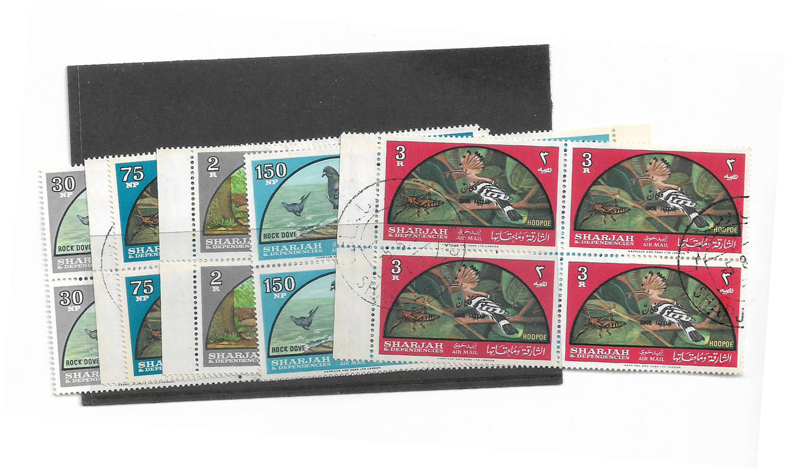 Category Middle East Lot number 929 Starting Bid 500 Lot Pictures Sharjah 1965 VFU Birds block of 4 set. Add to Slideshow Off